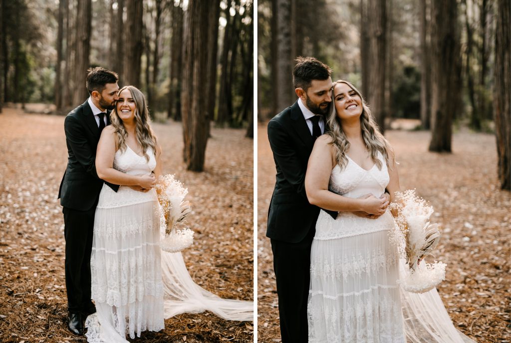 We started our day off at Headlands Hotel Austinmer Beach where Nic, his two sons and parents were spending a cruisey morning getting themselves ready for the day ahead at Tumbling Waters Retreat, Wollongong. After a few family portraits and a little stroll out by the ocean, we made our way over to Tumbling Waters Retreat, Wollongong where the girls were getting ready. Having already cracked open a bottle of sparkling, the girls were a little nervous but otherwise happy and excited, particularly because no wet weather plans needed to be discussed! Spoilt with gorgeous ocean views from the luxury accommodation at Tumbling Waters Retreat, Wollongong, we took some portraits and candids before it was time to slip into Chantal’s simple yet elegant gown. And before we knew it, we could see guests begin to arrive so we knew it was time to get ourselves prepared for the ceremony at Tumbling Waters Retreat, Wollongong. Usually ceremonies take place on the grass area at Tumbling Waters Retreat, Wollongong however due to all the rain, the grass was still damp and muddy so it was decided that the ceremony would take place on the deck overlooking to ocean – no complaints from us. With guests spread out on the hill (offering perfect viewing for guests) and Chantal and Nic exchanging vows in front of the most gorgeous floral arbour, the bride and groom said their I do’s amongst their dearest family and friends. Not long following, it was time for some bride and groom photos. Luckily with such gorgeous grounds, we didn’t need to venture far from Tumbling Waters Retreat, Wollongong. We didn’t have long until the sun was fully set so we took a few shots around the gardens and in the bushland just outside Tumbling Waters Retreat, Wollongong. We got what we needed within our 30minute time frame before it went completely dark and then it was time to rejoin the guests as they were finishing up canapes at Tumbling Waters Retreat, Wollongong. Heart-warming, funny and short speeches were following by a delicious 3 course meal as well as cake. And once formalities were complete, it was time to let loose on the dance floor. To finish up a specular day at Tumbling Waters Retreat, Wollongong, Chantal and Nic were (fake) farewelled by guests through a tunnel of sparklers but then still snuck in a few more songs on the dance floor with champagne still flowing freely much to everyone’s joy – it didn’t look like anyone wanted the night to end! Thanks again for having us Chantal and Nic, such a beautiful day and an even more beautiful couple and we so thrilled we were there to be a part of it.